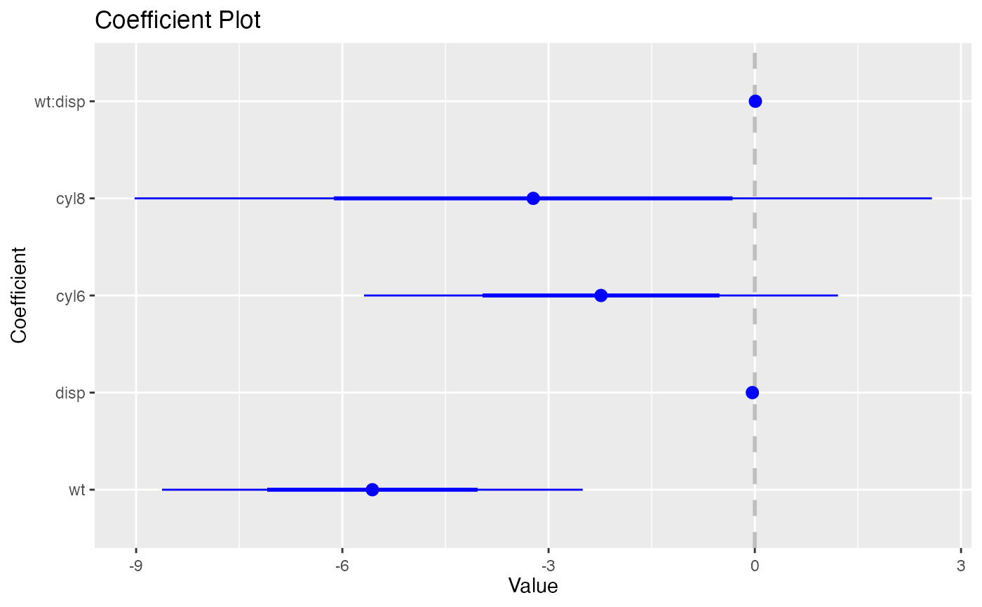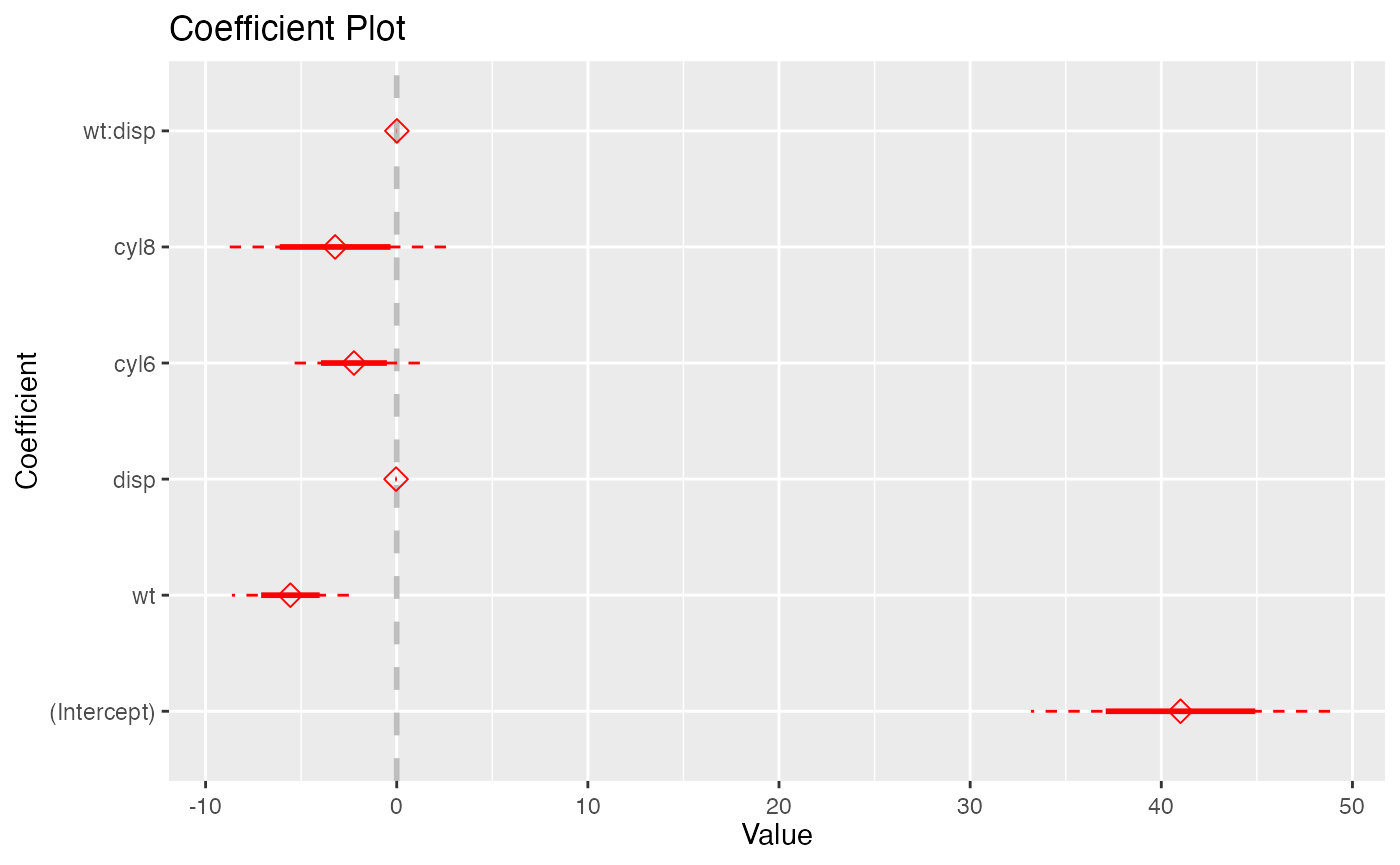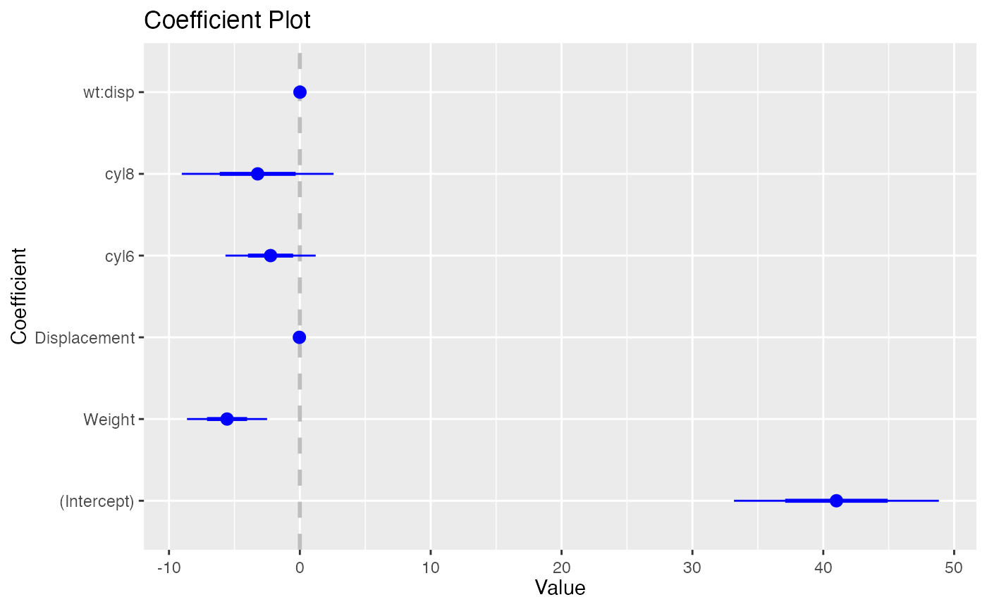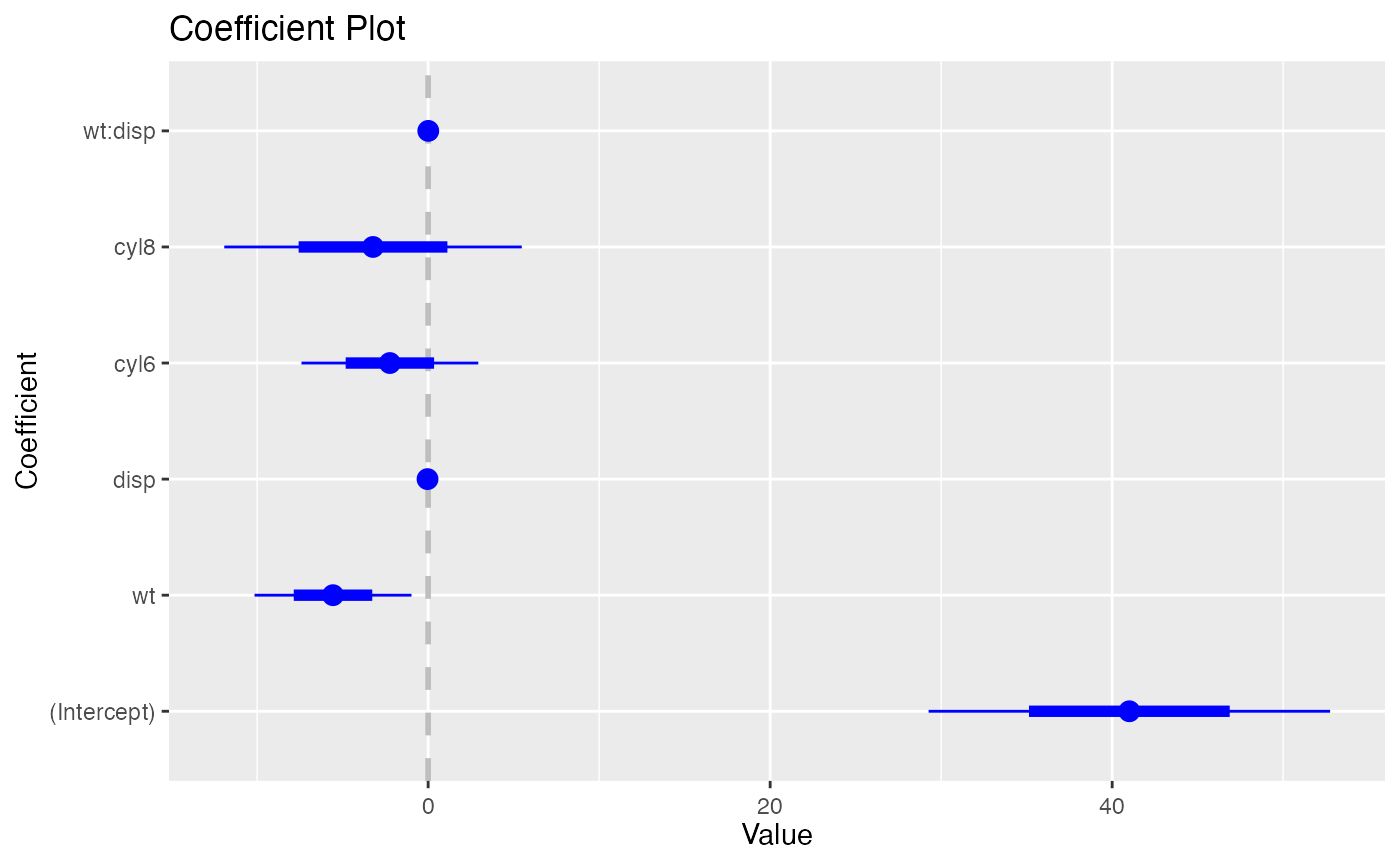 model <- lm(mpg ~ wt*disp + cyl, data = dt)Labels