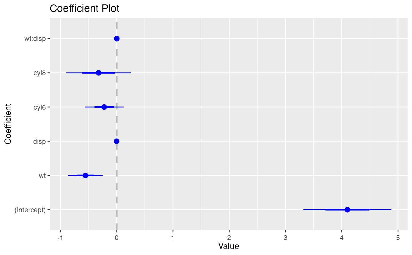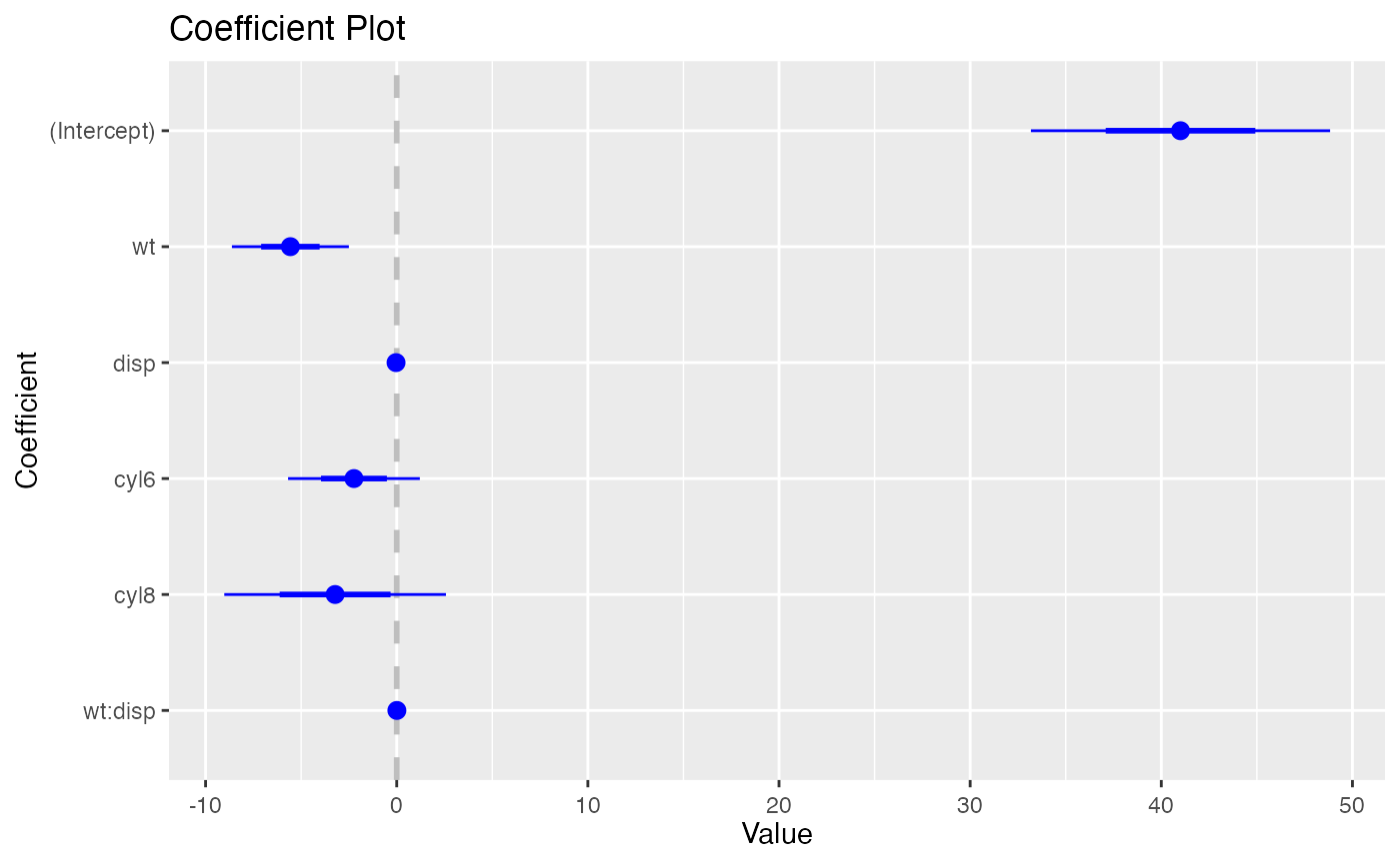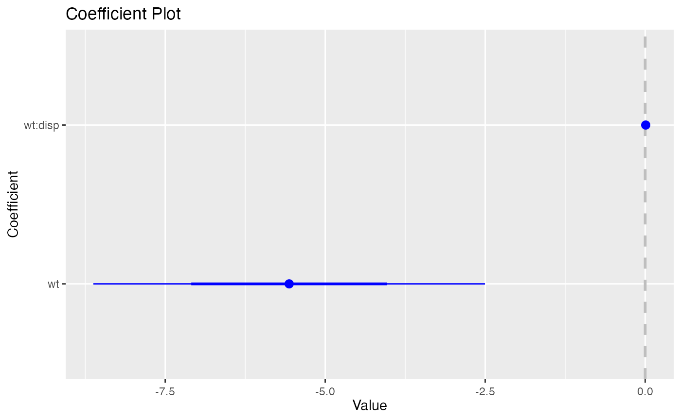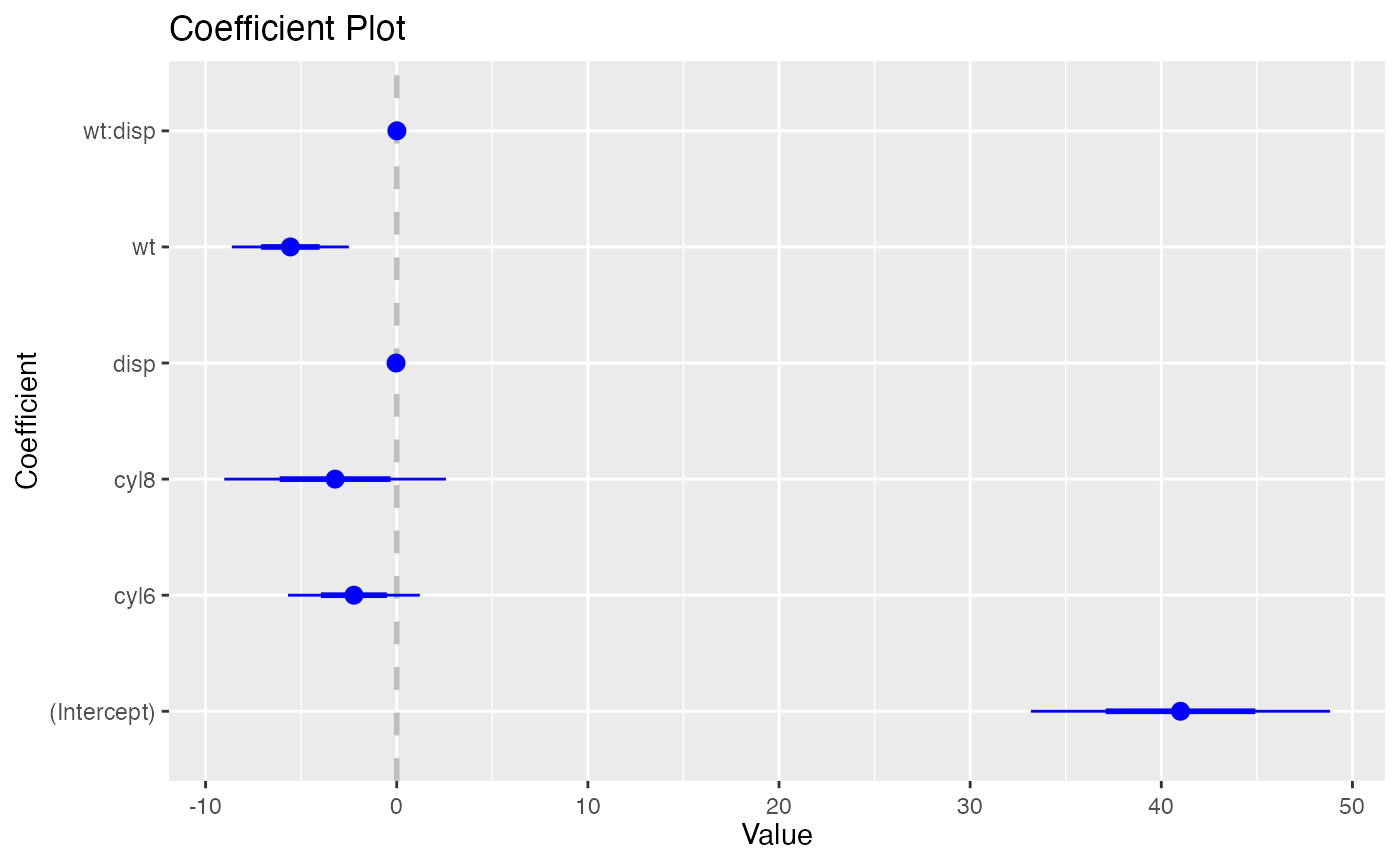 model <- lm(mpg ~ wt*disp + cyl, data = dt)Labels