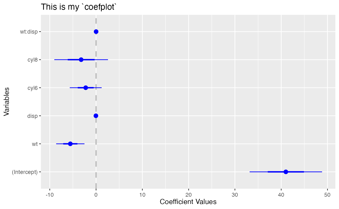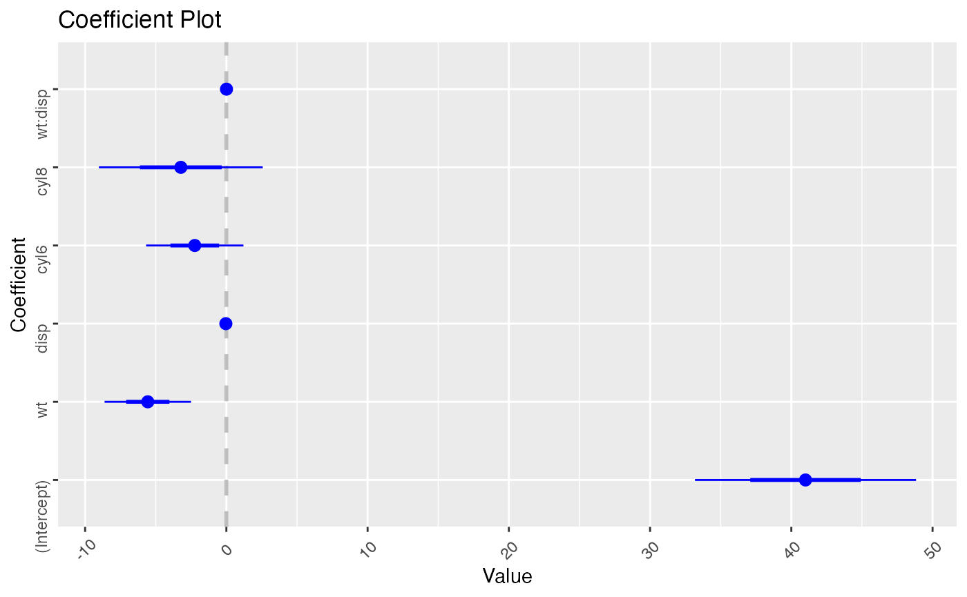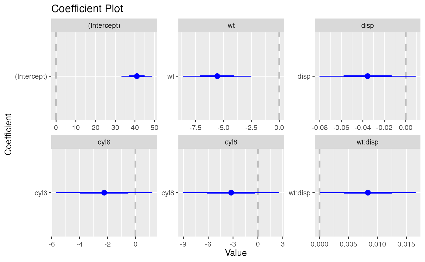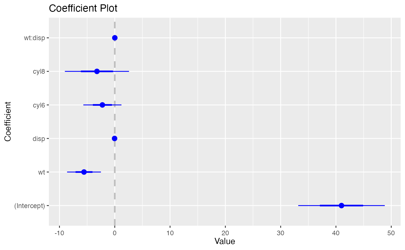 model <- lm(mpg ~ wt*disp + cyl, data = dt)Labels